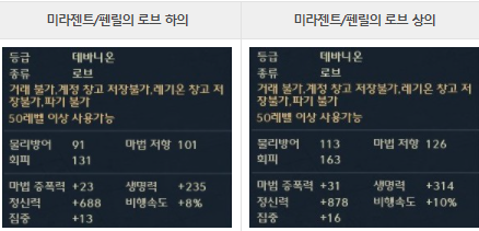 2021/01/01 - [게임/아이온클래식] - [아이온클래식]50레밸 마도성,정령성 방어구 로브세트 한눈에 비교하기