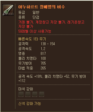 B 랭크에 추가하여아누하르트 정예병의 한손 무기