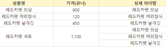 3.큐나마켓 의상 추가(레드카펫 세트)