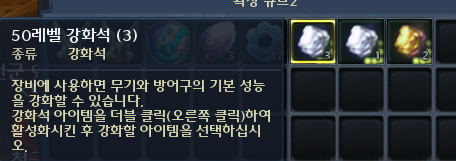 | 하의 | 1 ~ 5개 | 0 ~ +40 레벨 강화석 |
