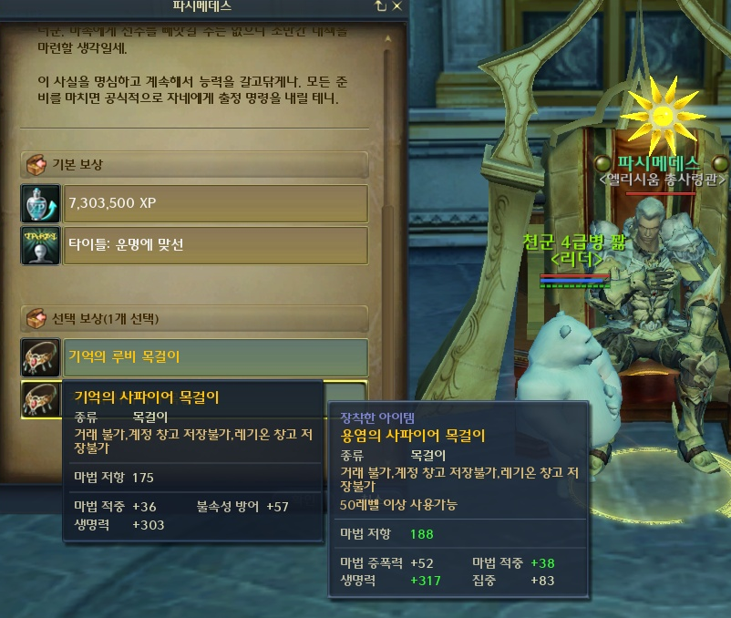 암포에서 착용하기 유용한 기억의 루비 목걸이와 기억의 사파이어 목걸이를 선택보상으로 받으실수있습니다