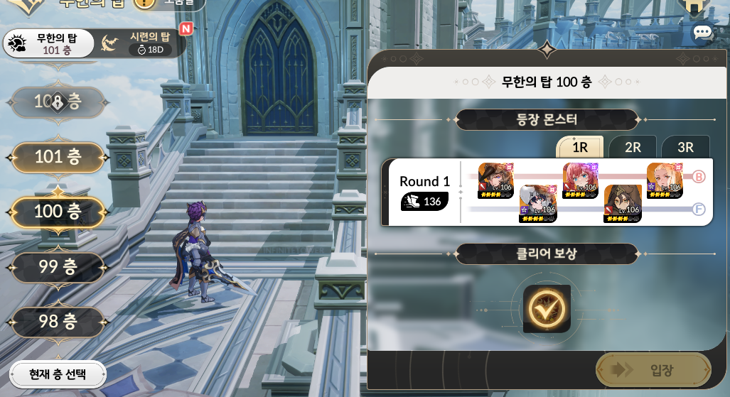 무한의탑 100층은 CC기, 물리딜러들의 피해량이 높아서