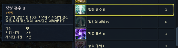 부식스킬 및 마나회복스킬은 수동으로