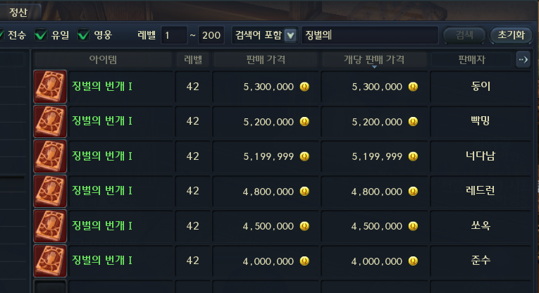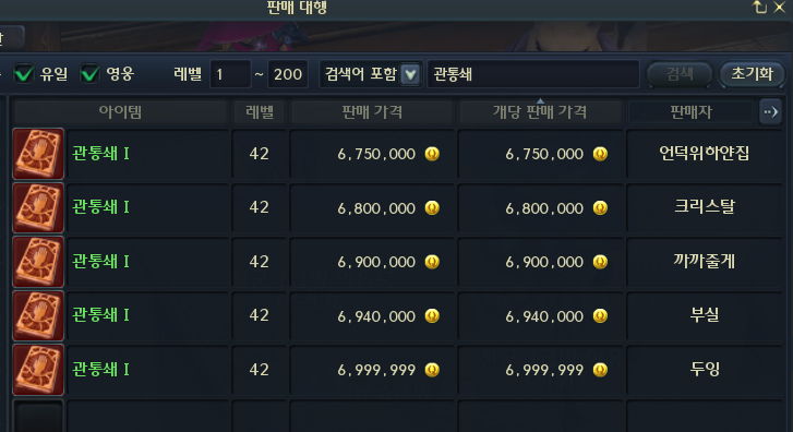 스킬북 파티가 있을정도로 매물이 없습니다