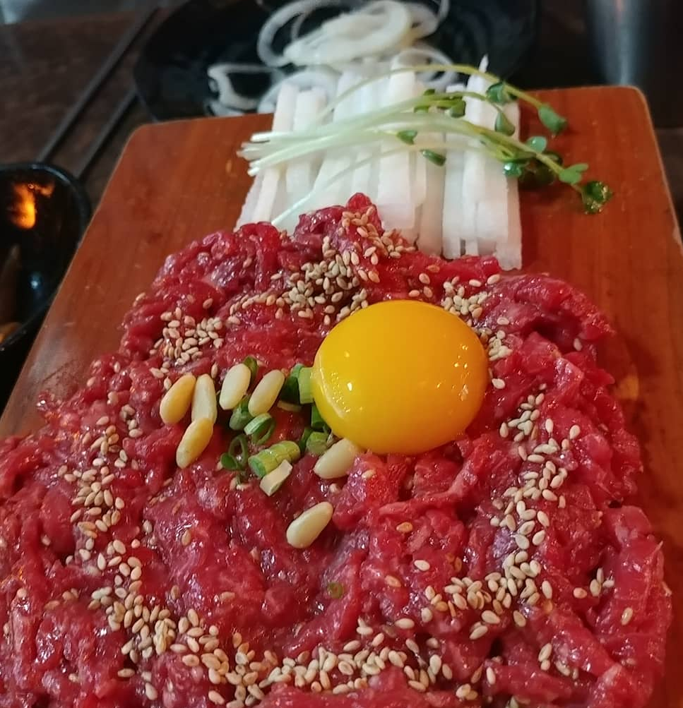 육회 노른자 무조건 터트려서 비벼먹어야함,,, 죤,,맛,,탱