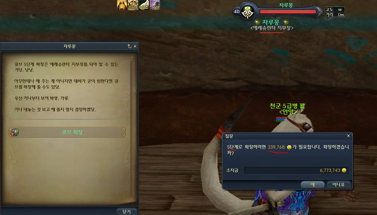 집안쪽에 자루몽이 5단계 큐브확장을 34만 키나정도로 확장해준다