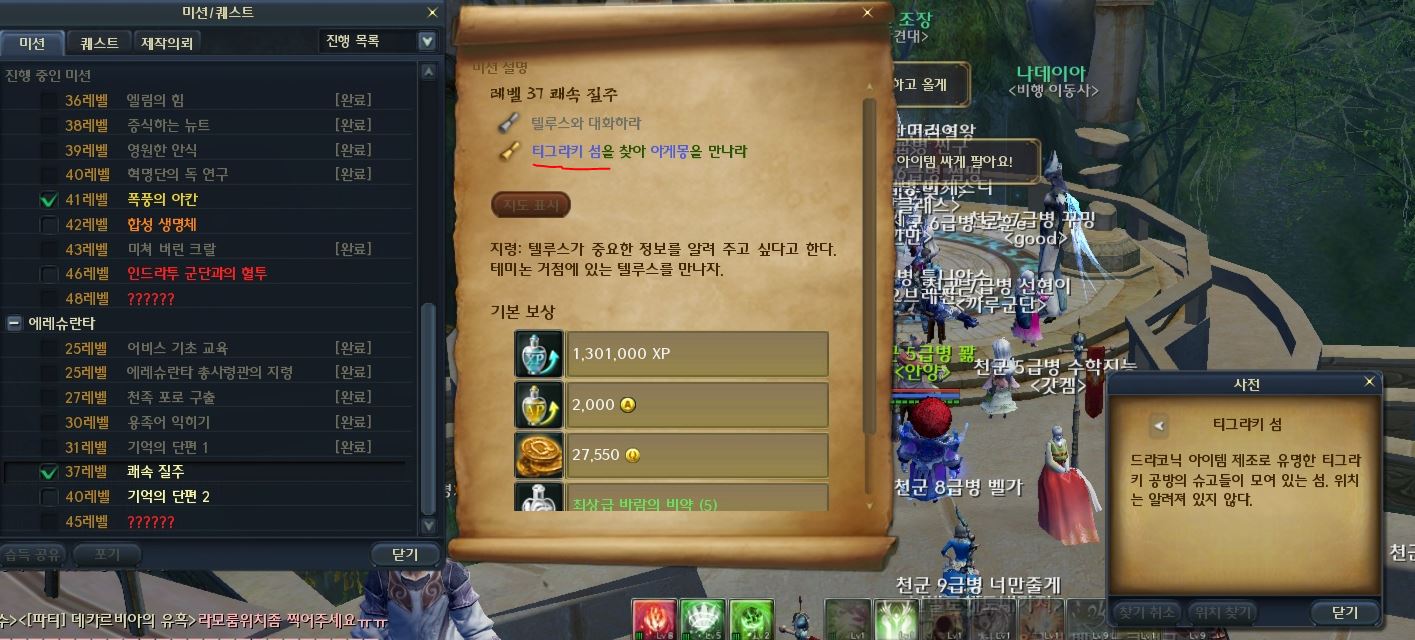 쾌속질주 퀘스트를 얻게되면 티그라키섬에 가게 됩니다.