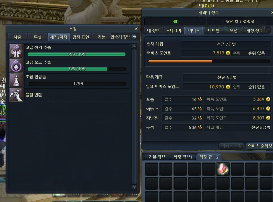 정기추출을 399를 찍고 현재 달인퀘를 진행중!